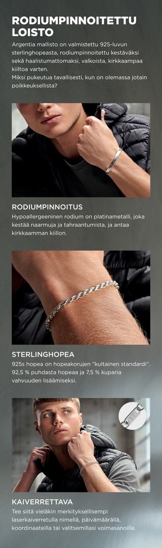 Argentia | 925 hopea | 6 mm rodinoitu sterling-hopeinen kalanruotuketjurannekoru