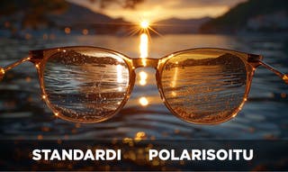 - Vähentää heijastusta: Nämä linssit suodattavat tasaisista pinnoista (kuten vedestä, teistä, muista autoista tai lumesta) heijastuvaa valoa, mikä vähentää silmien rasitusta ja tekee ulkoilusta turvallisempaa ja miellyttävämpää.