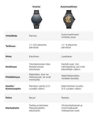 KVARTSIKELLOT VS AUTOMAATTIKELLOT : TÄRKEIMMÄT EROT