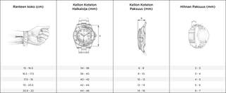 Mittaa aina ranteesi siitä kohdasta, jossa haluat käyttää kelloa, ja vertaa sitä tuotesivulla annettuun suositeltuun kokoon.