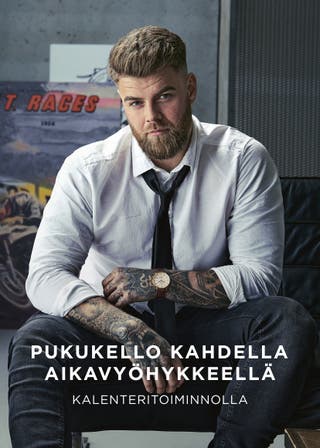 Päivämäärällä, viikonpäivällä, 24-tunnin kellotaululla ja kahdella aikavyöhykkeellä