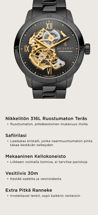 Dante II | Musta luurankokello kullanvärisellä koneistolla