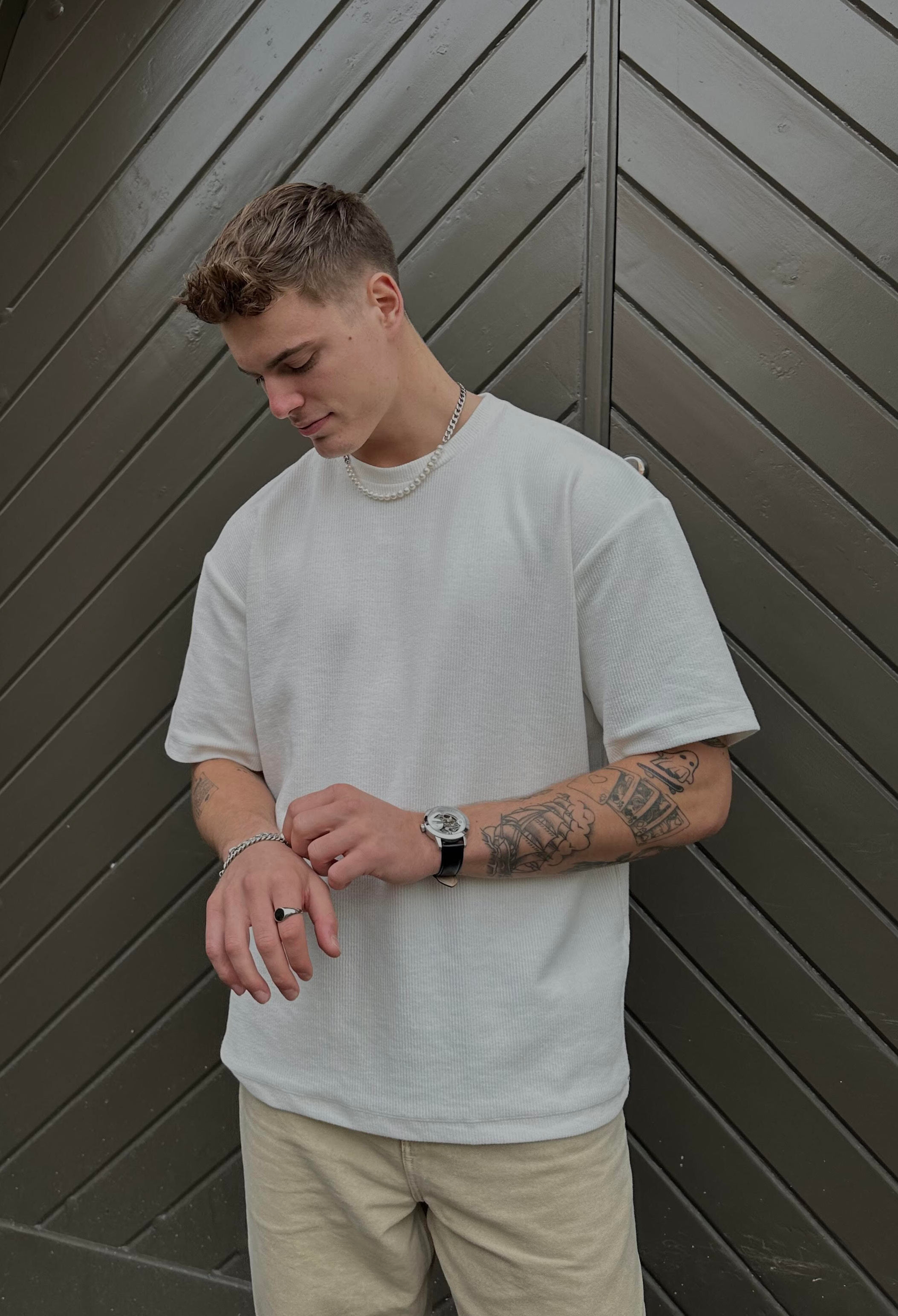 Hopeanvärinen Charlie Amager -kaulakoru panssariketjusta ja helmistä