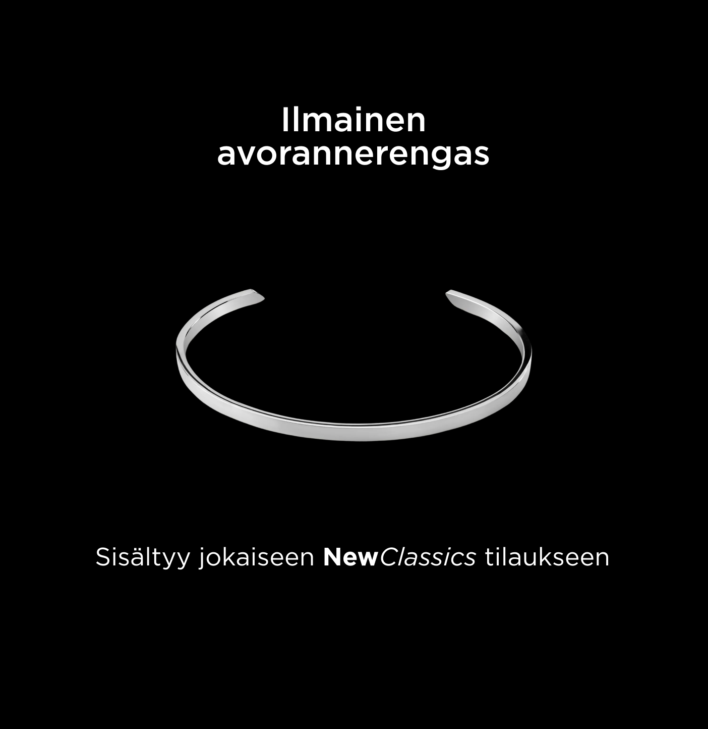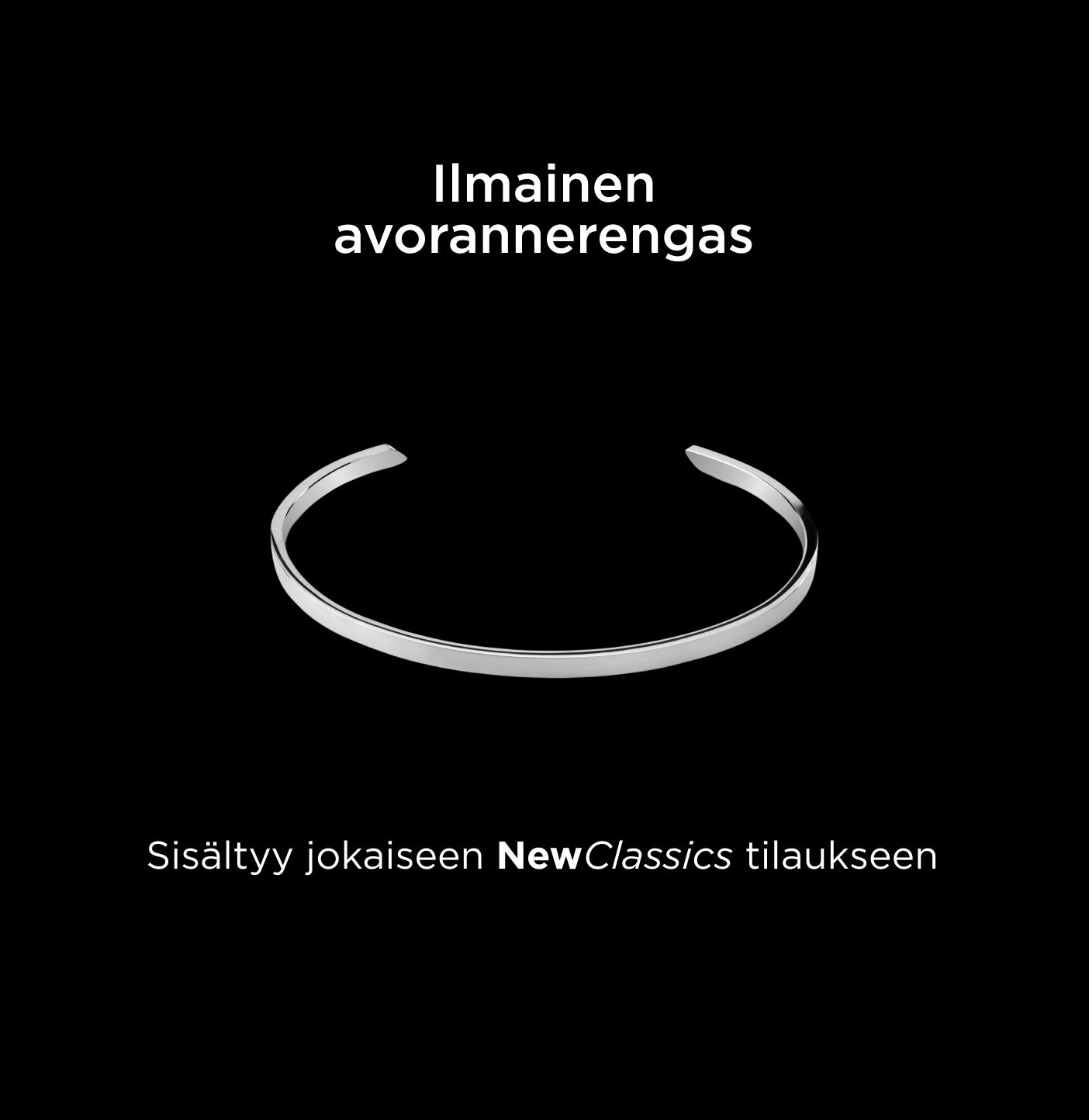 Valitse mikä tahansa NewClassics koru tältä sivulta, niin saat ilmaisen rannekorun automaattisesti. Ei minimimäärää, ei koodia. Vain tyylikäs teräksinen koru, jolla juhlistamme uutta mallistoamme.