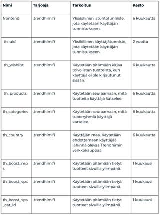 Jos sinulla on kysyttävää evästekäytännöstä, lähetä sähköpostia osoitteeseen info@trendhim.fi.
